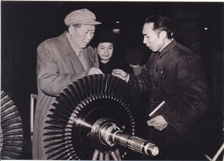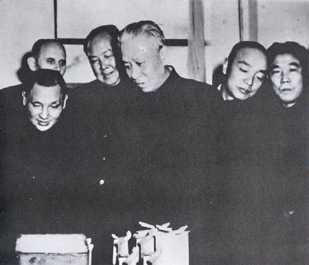 1955年11月13日劉少奇、鄧小平、楊尚昆視察沈陽航空發動機廠。