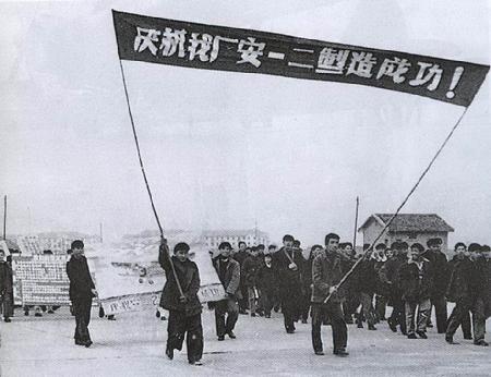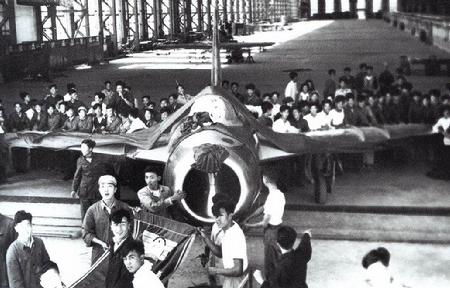 1956年新中國制造的第一種噴氣式飛機殲5推出廠房時的熱烈場面